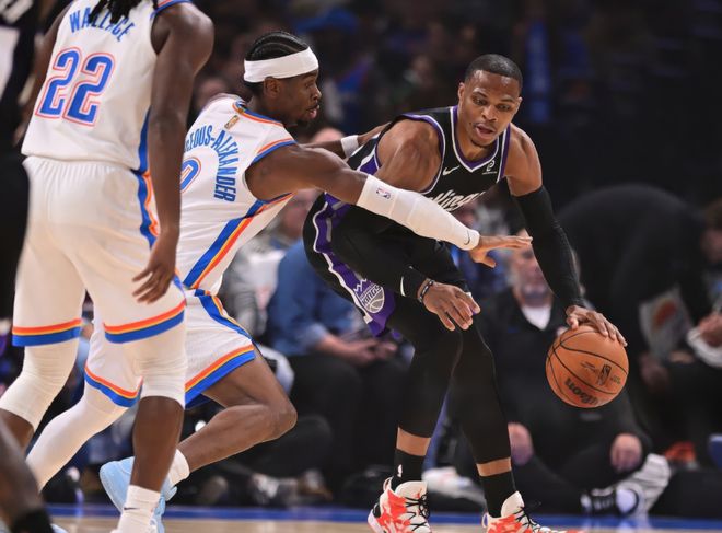自然要从威少说起。威少本赛季拿着1年360万无保障底薪,却已经从替补打成首发,彻底征服国王主帅克里斯蒂。比如之前对阵掘金,威少砍下26分12篮板6助攻;紧跟着打勇士又拿到23分16篮板10助攻,带队赢球;打雷霆时威少也拿到24分6篮板9助攻,威少在首发,那首发赢分;威少带替补,那首发全部输分,替补能赢分。自从曝出球队准备全面重建后,几名当家核心早已经无心恋战,场场摆烂,最近一波6连败滑落。主帅克里斯蒂感慨:“我们竞技水平低得可耻,就是这样。如果不想出战就别穿球衣,我为球队感到丢人。”