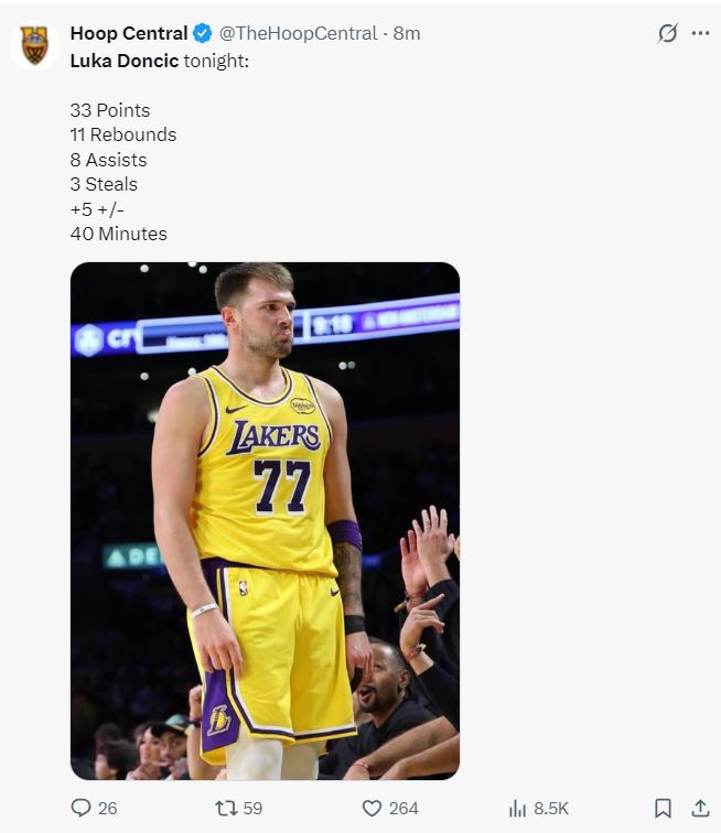 末节还剩8分56秒东契奇回来,翻身跳投+突破造犯规他帮助湖人建立优势,东契奇命中第三个三分球后得分也上到30+,湖人已经拉开到13分的领先,随后湖人防守下滑连续打铁,马卡连拿12分,东契奇两个致命失误,好在乔治三分绝杀不中。